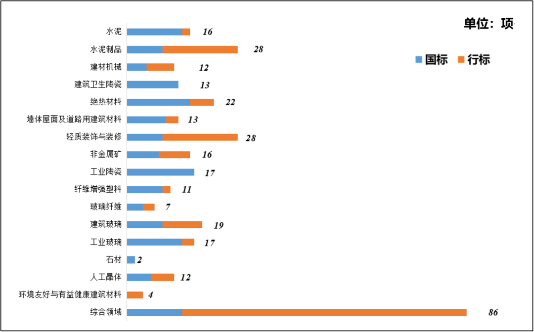 2. 推薦性政府標(biāo)準(zhǔn)發(fā)布情況:2024年建材行業(yè)共發(fā)布推薦性政府標(biāo)準(zhǔn)177項(xiàng),其中,國(guó)家標(biāo)準(zhǔn)82項(xiàng)、行業(yè)標(biāo)準(zhǔn)95項(xiàng)。各專業(yè)領(lǐng)域標(biāo)準(zhǔn)發(fā)布數(shù)量情況見圖3。涉及新材料標(biāo)準(zhǔn)29項(xiàng)、質(zhì)量與可靠提升標(biāo)準(zhǔn)50項(xiàng)、節(jié)能與綜合利用標(biāo)準(zhǔn)13項(xiàng)、綠色低碳標(biāo)準(zhǔn)32項(xiàng)、節(jié)水標(biāo)準(zhǔn)6項(xiàng)、工程建設(shè)標(biāo)準(zhǔn)5項(xiàng)、基礎(chǔ)通用標(biāo)準(zhǔn)19項(xiàng)。
